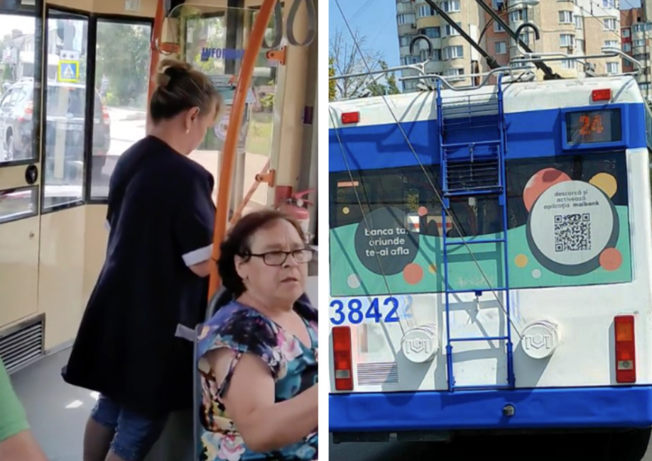 Taxatoarea și șoferul, care au agresat o mamă cu doi copii într-un troleibuz din capitală, au fost eliberați din serviciu