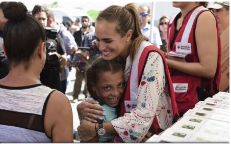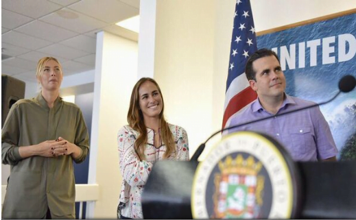 Șarapova și Puig au fost primite de guvernatorul Ricardo Rossello și s-au deplasat în orașul Loiza, unde au oferit mai multe aragaze și butelii de gaz pentru locuitori, fiind însoțite de personal de la Crucea Roșie.