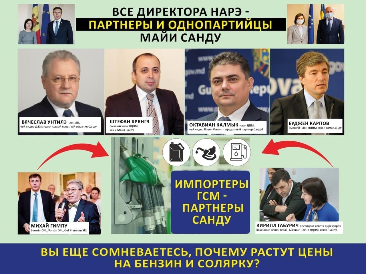 Responsabilii de preț la carburanți în Republica Moldova sunt partenerii președintelui Maia Sandu. Declarația îi aparține deputatului PSRM Bogdan Țîrdea, care a prezentat legăturile dintre șefa statului, directorii Agenției Naționale pentru Reglementare în Energetică (ANRE) și principalii importatori de produse petroliere, informează Politics.md