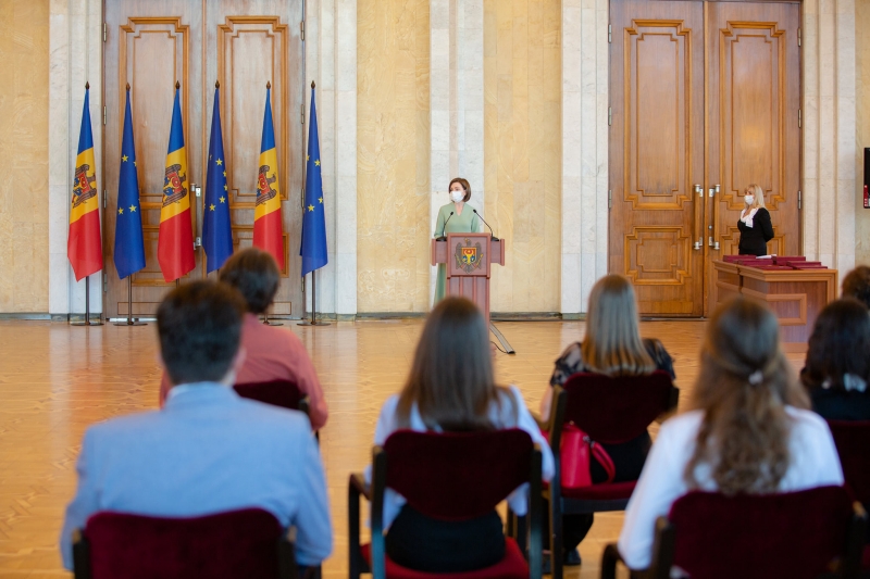 După ceremonia de decernare a premiilor, șefa statului a invitat absolvenții să viziteze Președinția Republicii Moldova.