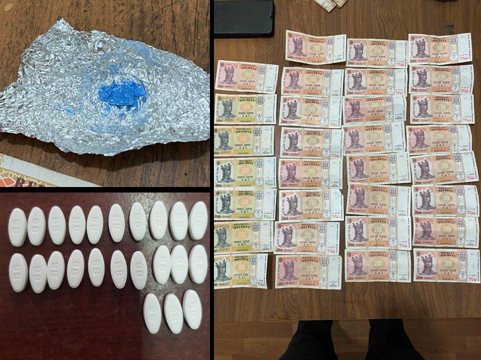 În urma percheziției corporale și la domiciliul acestuia, polițiștii au depistat mijloacele bănești marcate, obținute în urma comercializării drogurilor în sumă de 8.000 lei și o pastilă de “Ecstasy”. Probele delicte depistate, au fost ridicate și sigilate conform procedurii.