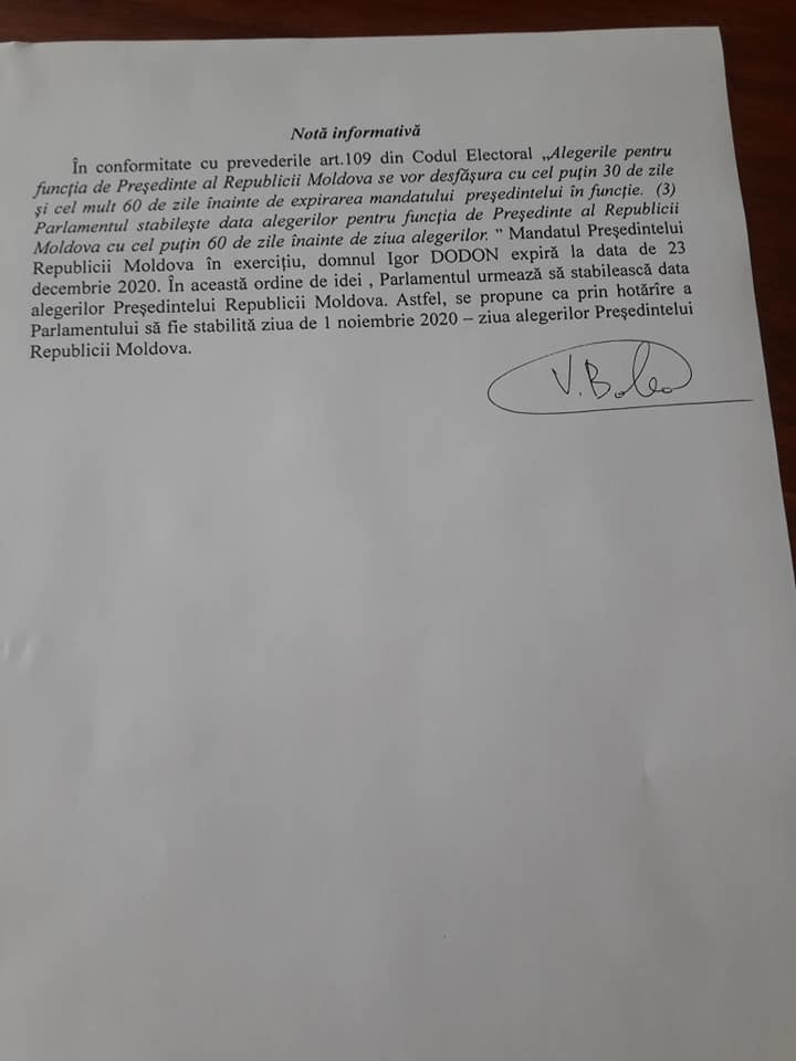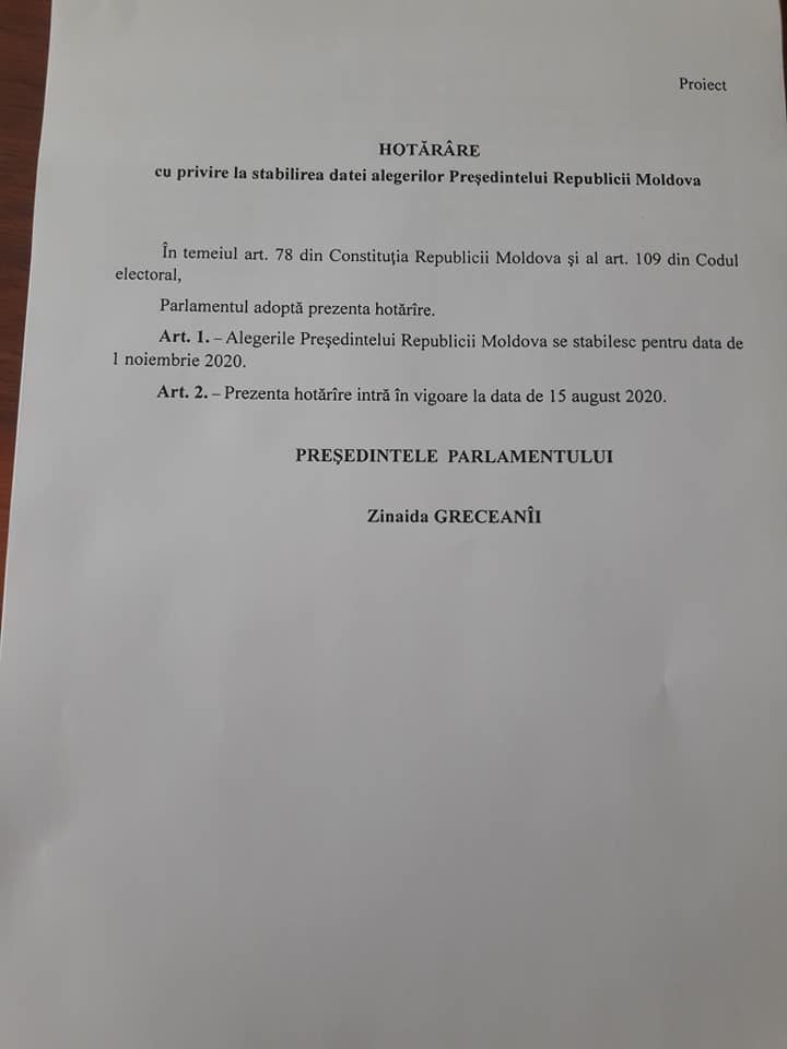 S-a prpus ca data alegerilor să fie stabilită pentru 1 noiembrie 2020.