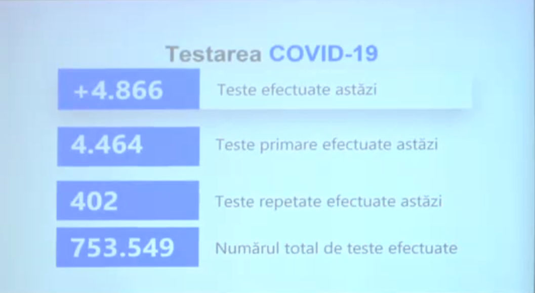 Numărul total teste efectuate – 4866, dintre care 4464 primare și 402 repetate.