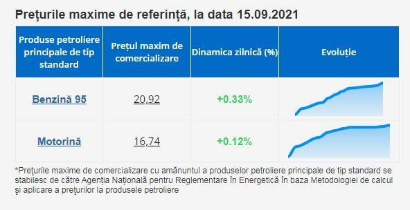 Astfel, mâine un litru de benzină va avea un preț de 20,92 lei, iar de motorină – 16,74 lei, a anunțat ANRE.