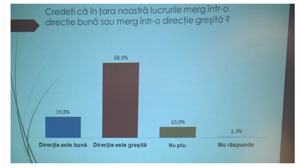 Datele studiului indică că doar 20 % din cetățeni spun că direcția în care ne îndreptăm este bună.