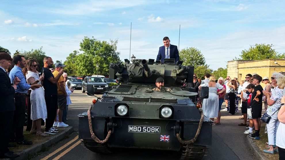 Un adolescent din Oxfordshire a mers la balul de absolvire într-un tanc, condus de tatăl său militar