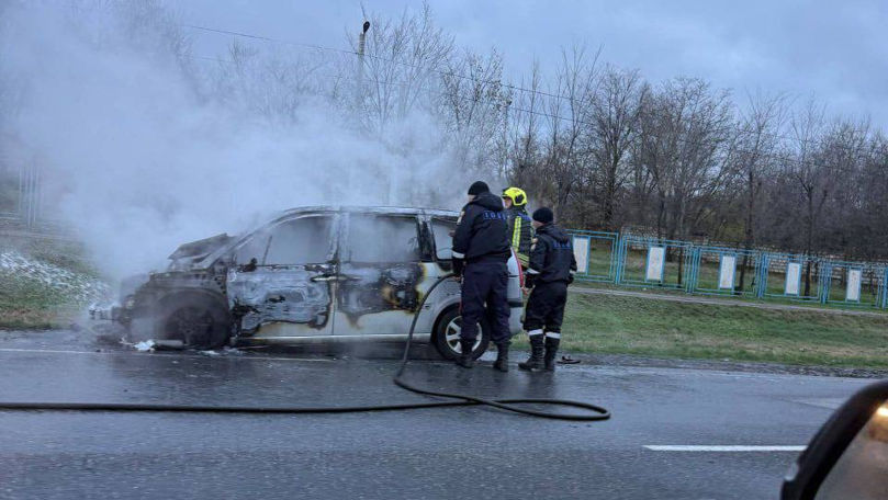 Un automobilist a rămas fără mașină după ce un Mercedes a ars complet într-un incendiu produs astăzi, 5 noiembrie 2025, pe un traseu din apropierea satului Lucășeuca, raionul Orhei.