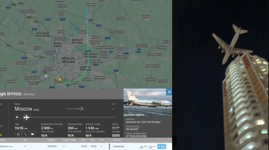 Un avion de transport militar An-124 ”Antonov” a fost surprins luni seara zburând la o altitudine extrem de joasă printre blocurile rezidențiale din Moscova. Imaginile au fost publicate pe mai multe canale de Telegram și X, stârnind numeroase discuții.