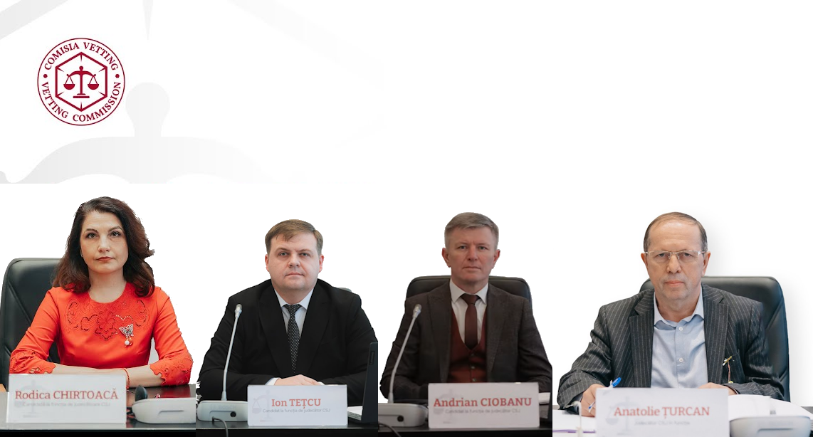 Comisia politică Vetting a finalizat evaluarea integrității a încă trei subiecți care candidează pentru funcția de judecător la Curtea Supremă de Justiție (CSJ) și a unui judecător CSJ în funcție. Potrivit Comisiei, candidații CSJ, avocatul Rodica Chirtoacă, procurorul Ion Tețcu, judecătorul de la Curtea de Apel Bălți, Andrian Ciobanu, și judecătorul în funcție la Curtea Supremă de Justiție, Anatolie Țurcan, nu corespund criteriilor de integritate financiară și etică și nu promovează evaluarea. Concluzia se conține în rapoartele de evaluare politică ale Comisiei, trimise astăzi Consiliului Superior al Magistraturii pentru examinare.