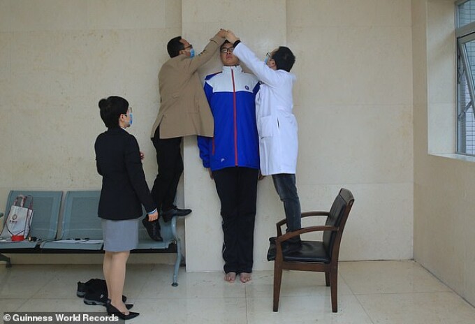 Experții Guinness World Records l-au măsurat duminică pe tânăr și au stabilit că are o inățime de 2,21 metri. În noiembrie se va anunța dacă înălțimea atinsă de Ren reprezintă un nou record.
