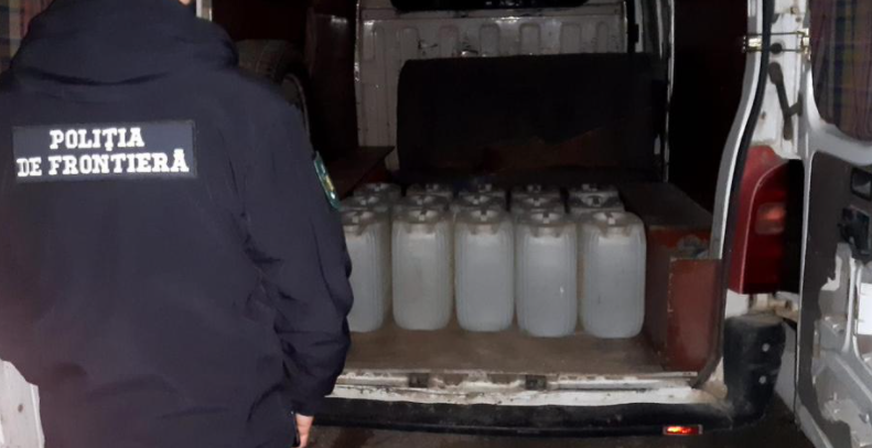 Polițiștii de frontieră din Direcția regională Nord aflați în misiune de serviciu au oprit în trafic un microbuz de model Renault Master. În timpul verificărilor, în compartimentul marfar al mașinii au fost depistate 15 butelii din masă plastică pline cu lichid incolor cu miros specific de alcool etilic, fiecare butelie având un volum de 22 de litri.