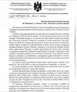 La 19 februarie 2020, în urma unui control efectua de către reprezentanții direcției de Educație din Telenești, s-a constatat că de la ore lipsesc 73 de copii din 126, care își fac studiile în această școală. Peste 30 de minori s-au adresat la medic din cauza problemelor de sănătate, iar starea celorlalți 40 nu se cunoștea.