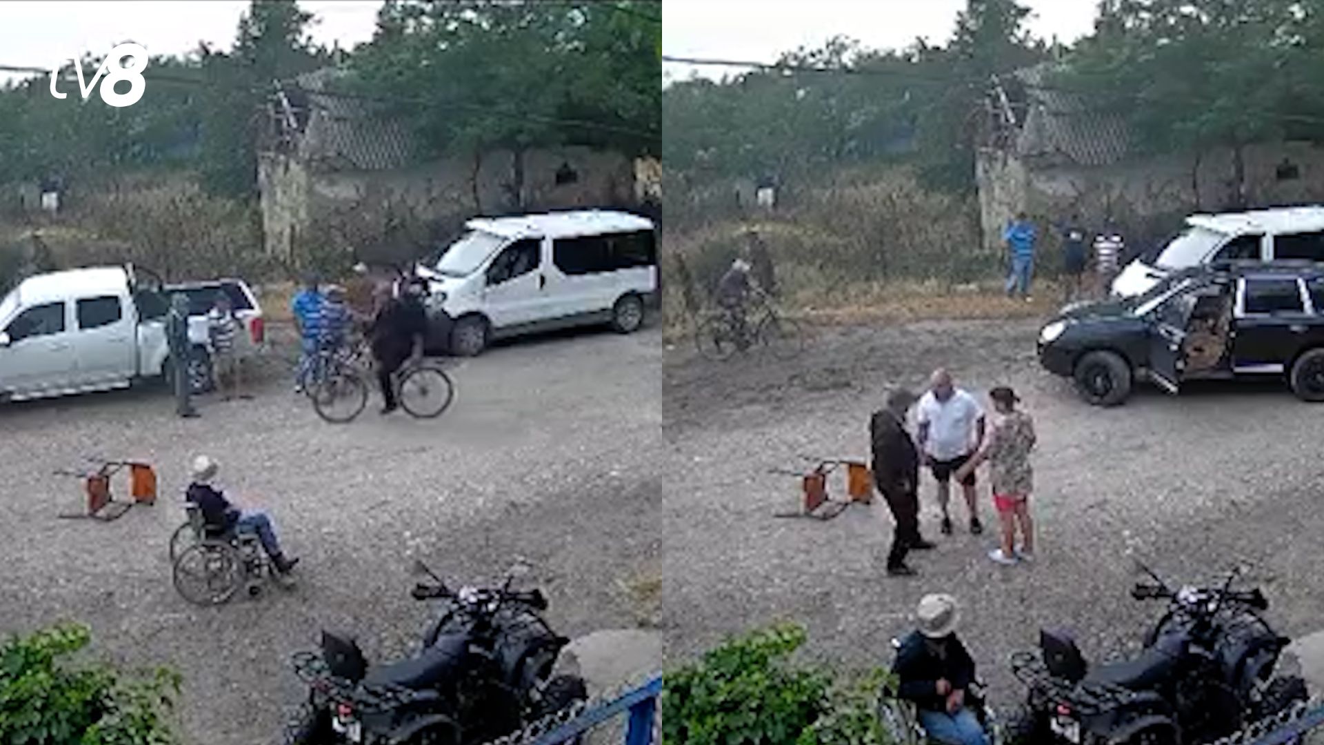 Camere de supraveghere instalate în preajmă surprind momentul în care Valentin Rangu, consilierul raional PAS la Cantemir coboară din mașina sa de lux și aruncă cu scaune în terasa magazinului. Ulterior, acesta ia la pumni oamenii din cale.