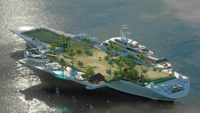 Sub postul echipajului, în hangarul de 13.800 de metri pătraţi, omul de afaceri german şi-ar dori să facă o sală de concerte, un cazinou, un cinematograf, baruri şi restaurante. Cabinele celor 55 de marinari ar urma să fie transformate în camere pentru clienţi. Puntea ar deveni un teren de golf cu nouă găuri care poate fi reconvertit iarna în pistă de schi acoperită de zăpadă artificială. Proiectul mai conţine şi o zonă de aterizare pentru elicoptere şi taxiuri zburătoare.