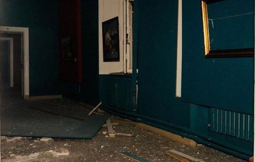 Primăria din Odesa a publicat un videoclip care arată ferestrele aruncate în aer și resturi din interiorul a ceea ce a spus că este muzeul de artă.