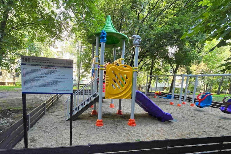 În acest an au fost amenajate opt astfel de terenuri de joacă în curțile de bloc în cadrul programului municipal.
