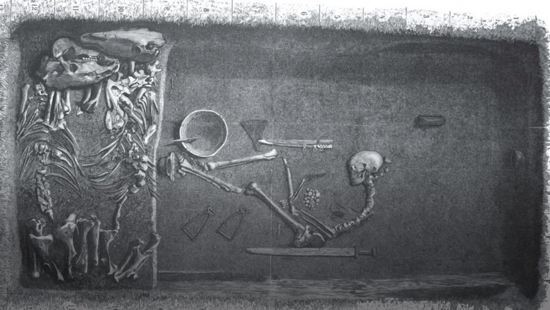 „Este un mormânt fascinant, cu multe obiecte care par să arate că ar fi aparținut unui bărbat. Sunt acolo arme și alte obiecte legate de viața unui războinic. Erau și doi cai, un armăsar și o iapă, ceea ce în sine este interesant, pentru că de obicei aveau doar armăsari. Era și un set de piese de joc de strategie. Astfel de obiecte aparțineau comandanților de trupe sau oamenilor de rang înalt”, adaugă cercetătoarea.