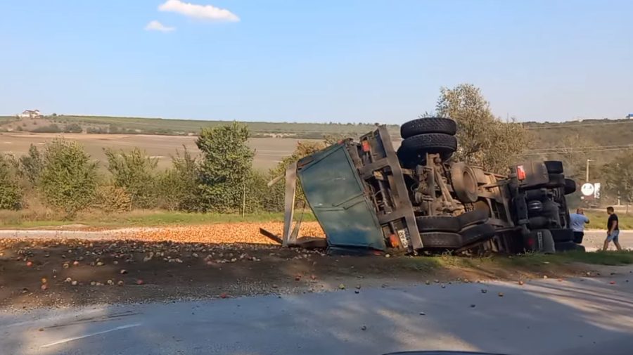 ”La fața locului, s-a constatat că un șofer de 65 de ani, aflat la volanul unui autocamion Man care tracta o semiremorcă încărcată cu mere, a pierdut controlul asupra vehiculului în curbă și s-a răsturnat pe partea laterală stângă, pe acostamentul din sensul opus. În urma incidentului, șoferul autocamionului a fost preluat de o ambulanță și transportat la Spitalul Raional Orhei pentru îngrijiri medicale”, a declarat pentru Realitatea.md, purtătoarea de cuvânt al Inspectoratului de Poliție Orhei, Elena Băetrău.
