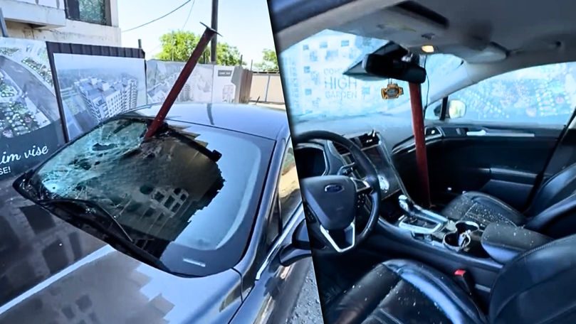 Un șofer a fost la un pas de tragedie după ce o țeavă metalică a pătruns prin parbrizul automobilului