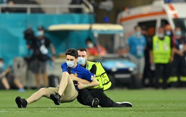Acesta a fost pus la pământ de un steward, iar jocul a fost oprit pentru aproximativ un minut, jucătorii profitând de pauză pentru a se hidrata. Partida s-a reluat fără alte incidente.