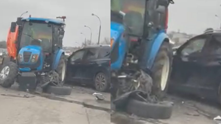 Un tractor a rămas fără roată după ce s-a ciocnit cu un Nissan pe o stradă din capitală
