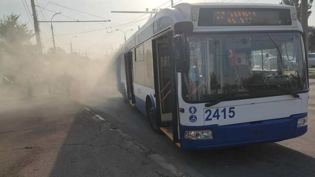 Un troleibuz cu 10 pasageri la bord, cuprins de fum pe șoseaua Hîncești din capitală. Reacția RTEC