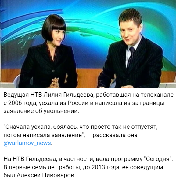 Este vorba despre Lilia Ghildeeva, care a lucrat la NTV timp de 16 ani, începând cu 2006.