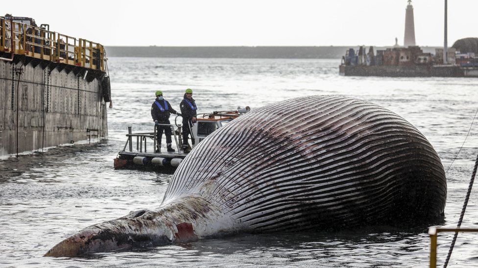 Descoperirea balenei a declanșat o operațiune de amploare pentru recuperarea cadavrului de 70 de tone, iar finalul acesteia a avut loc miercuri.