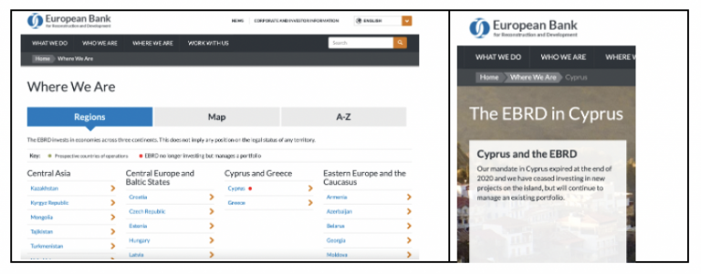 Un factor interesant este că BERD anunță pe site-ul oficial despre faptul că nu mai operează în Cipru din anul 2020.