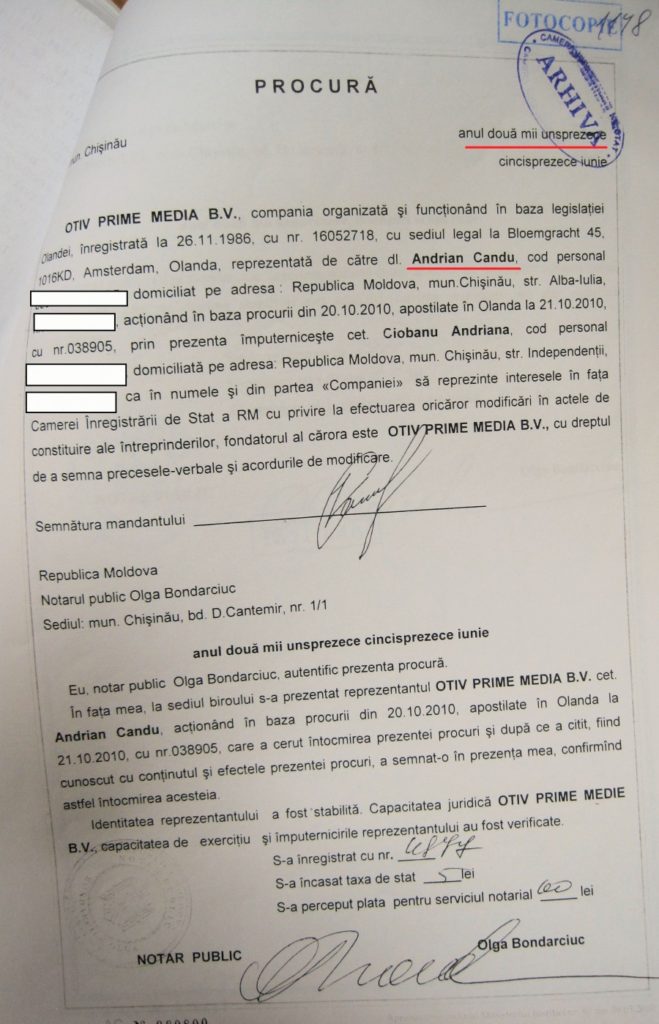 Potrivit unei investigații RISE.MD, compania OTIV Prime era reprezentată, în 2011, de către Andrian Candu, actualul lider al grupului politic PRO Moldova.