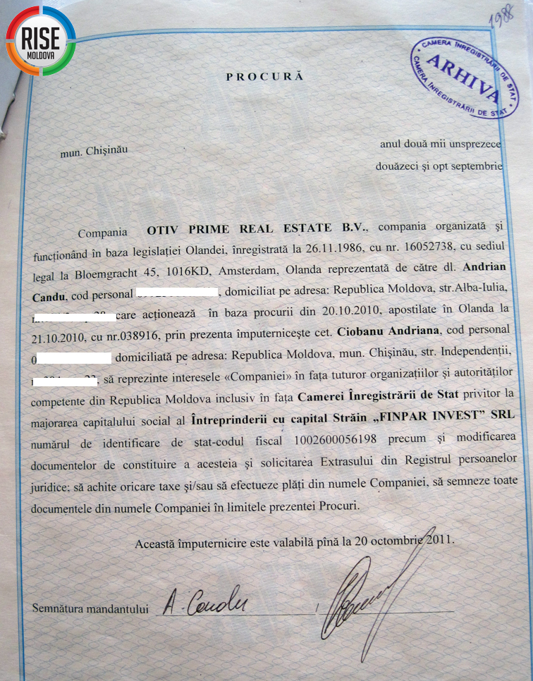 RISE Moldova a intrat în posesia mai multor documente care confirmă că, deși era deputat, Candu a întreprins un șir de acțiuni în baza procurilor. De exemplu, pe 26 septembrie 2011 a semnat decizia de majorare a capitalului social al companiei Finpar Invest. Peste două zile, pe 28 septembrie 2011, Candu a semnat o procură delegând o altă persoană să reprezinte Finpar Invest SRL. Pe 2 decembrie 2011, însă, a semnat un contract escrow prin care au fost vândute acțiunile companiei OTIV Prime Financial BV – parte a grupului OTIV. Datele analizate de RISE arată că, din fotoliul de deputat, Candu a semnat mai multe documente similare.