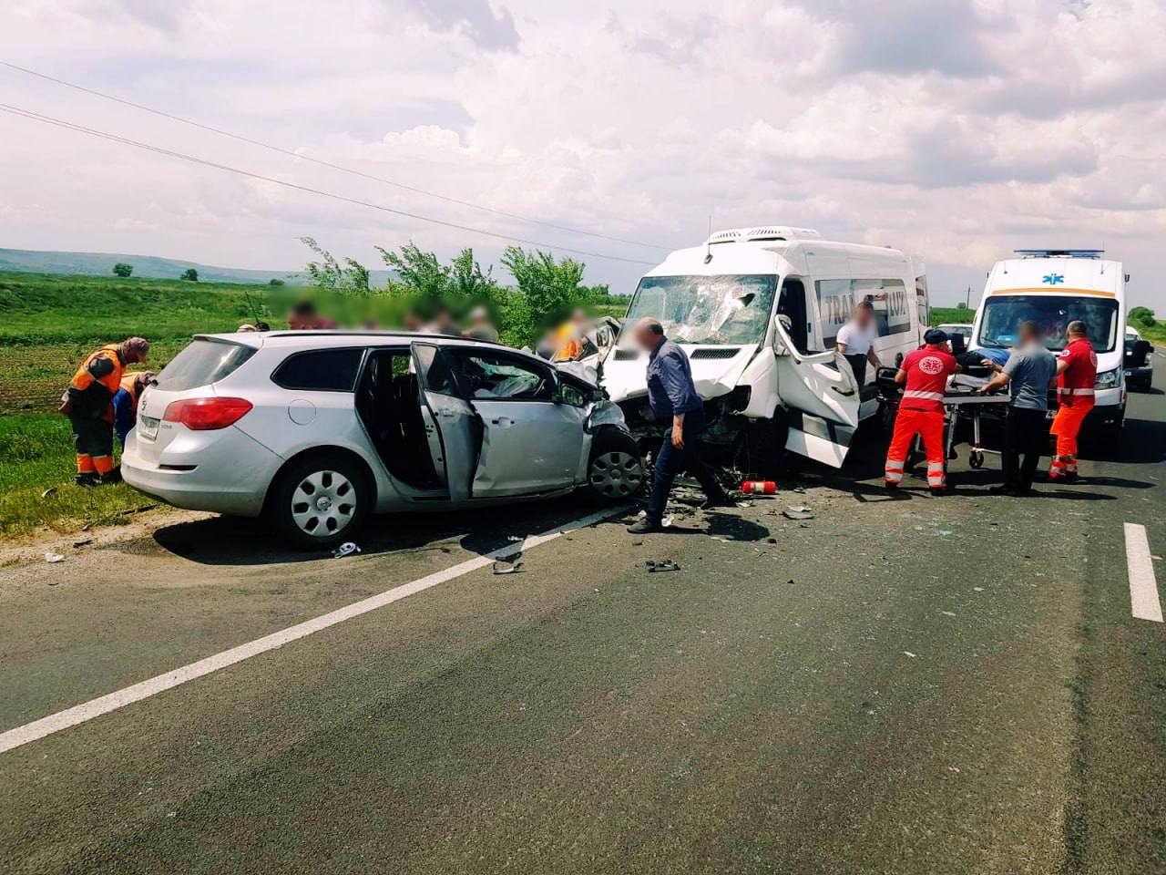 Preliminar, polițiștii au stabilit că automobilul de marca Opel la volanul căruia se afla un tânăr de 27 de ani, iar în calitate de pasageră pe bancheta din spate avea o femeie de 54 de ani, în circumstanțe necunoscute, a ieșit pe banda de sens opus și s-a tamponat frontal cu microbuzul de marca Mercedes care se deplasa regulamentar.