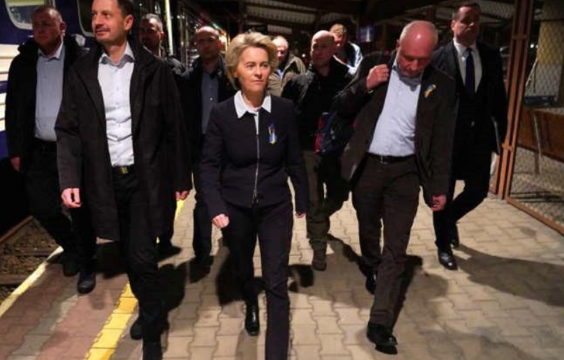 Preşedinta Comisiei Europene, Ursula von der Leyen, a plecat vineri dimineaţă cu trenul din Polonia spre Kiev, capitala Ucrainei, unde se va întâlni cu preşedintele Volodimir Zelenski. Ea este însoţită de şeful diplomaţiei UE, Josep Borrell.