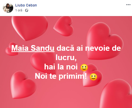 După ce a rămas din nou fără un post de muncă, Maia Sandu a primit astăzi o ofertă de lucru neașteptată. Psihologul Liuba Ceban, o invită pe Maia Sandu să lucreze la biroul său.