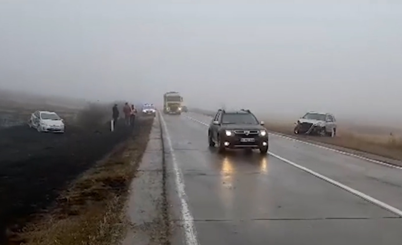 Ceaţa face ravagii. Două maşini s-au lovit violent, au derapat de pe carosabil şi au ajuns pe un câmp. Accidentul s-a produs pe şoseaua Chişinău-Bălţi, în apropiere de satul Cucioaia.