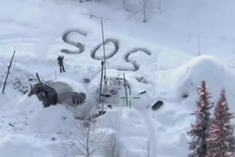 Cabana pustnicului Tyson Steel din Alaska a ars și a rămas fără adăpost în frig. Bărbatul a fost observat și s-a reușit salvarea lui datorită literilor „SOS” imense scrise pe zăpadă.
