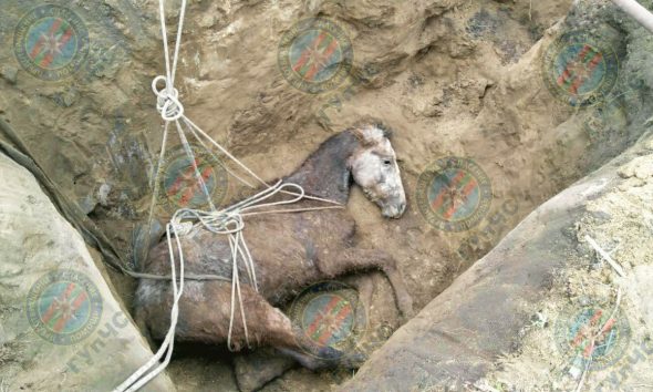 Au încercat să scoată un cal căzut într-o groapa cu propriile forte, însă într-un final au apelat la ajutorul pompierilor.