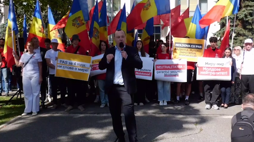 Manifestanții au scandat: „Pentru pace, pentru țară!”, „Jos PAS!”, „Moldova – stat suveran!”, „NATO nu ne trebuie!”, „Neutralitatea – garantul securității Moldovei!”, „Patrioții la putere – pace în țară!”.