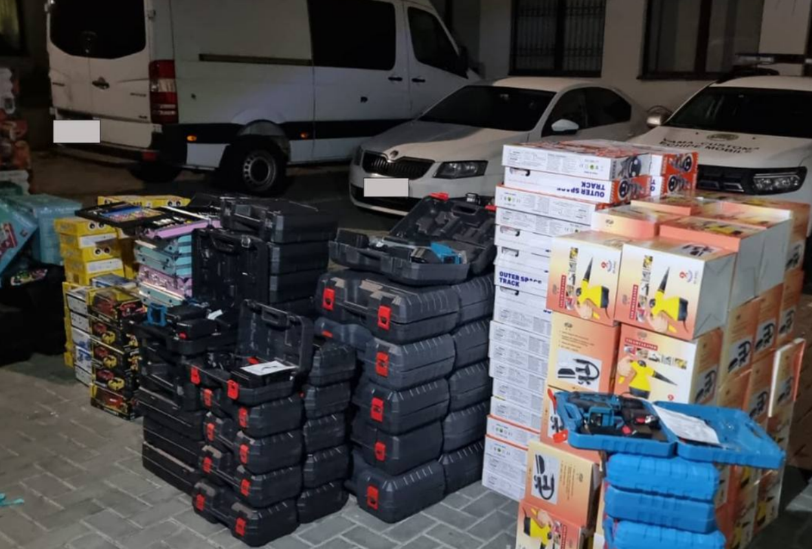 În cadrul controlului au fost depistate mai multe bunuri comerciale, inclusiv jucării pentru copii, electrocasnice și instrumente electrice.