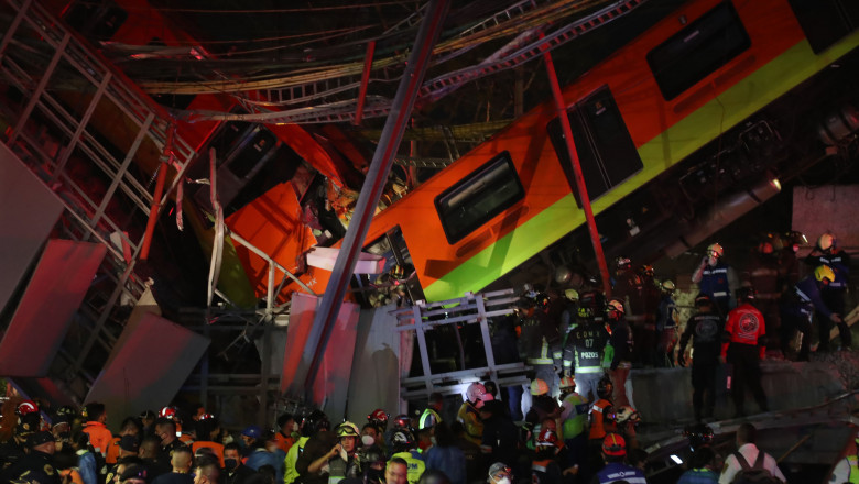 Imaginile distribuite de televiziunea mexicană și de rețelele sociale au arătat vagoane care atârnau în aer, în timp ce sirenele se auzeau în apropiere.