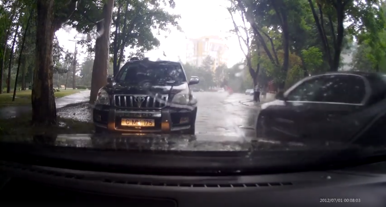 Vădit foarte grăbiți, aceştia au fost filmaţi de o cameră de bord a unui automobil care nu a dorit să permită altui automobil de marcă Toyota să circule pe contrasens. Culmea e că șoferul care încălca regulamentul circulației rutiere, soma automobilul care circula regulamentar să-i cedeze trecerea.