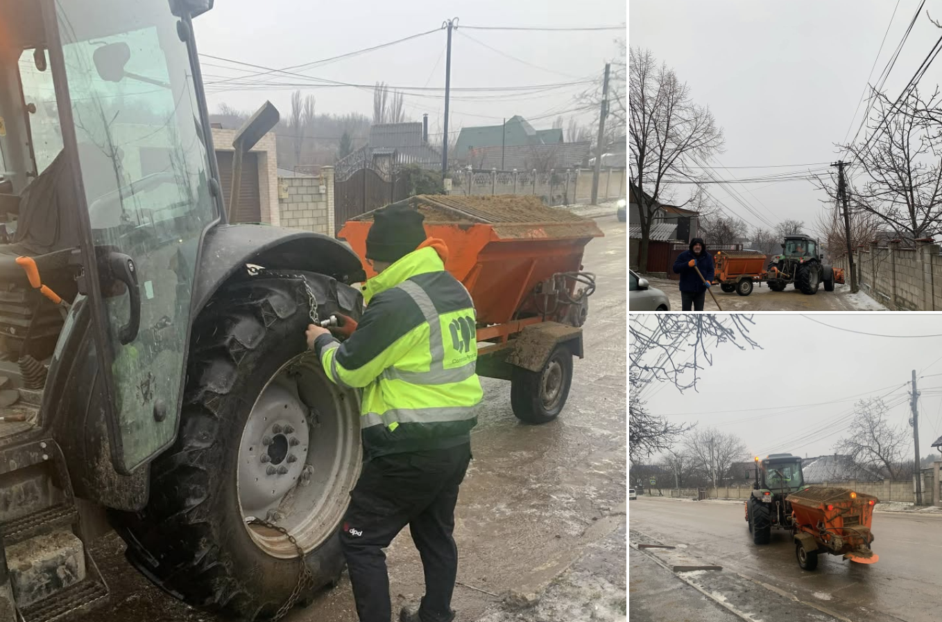 Echipele Primăriei Trușeni sunt în teren și intervin constant cu material antiderapant pentru a asigura siguranța circulației.