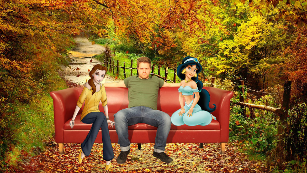 În cazul clipului de mai sus, a fost vorba de cele două personaje Disney împreună cu banca pe care le-am așezat. Am combinat cele trei layere cu Merge Layers și, după aceea, am apăsat pe CTRL + T pentru a redimensiona întregul set de elemente în raport cu fotografia de fundal.