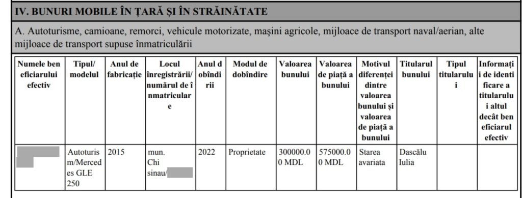 Încălcările însă nu se opresc aici. În declarația de avere depusă recent de către deputatul PAS, Iulia Dascălu, automobilul nu se mai regăsește. Parlamentarul nu a indicat nici faptul că ar fi vândut mașina. Totodată, deputatul PAS declară că și-a procurat chiar de la începutul acestui an un Mercedes GLE 250 la un preț de 300 mii de lei sau 15 mii de euro.