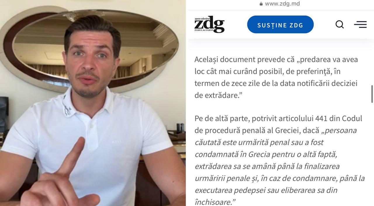 „Există, într-adevăr o prevedere în legislația elenă, care spune că o persoană condamnată sau cercetată penal în Grecia nu poate fi extrădată până la consumarea definitivă a cazului. Doar că vreau să atrag atenția că această prevedere se aplică doar în cazurile în care este vorba despre o infracțiune gravă, care prevede pedepse cu închisoarea de la cinci ani și mai mult. În cazul clientului meu însă, care vizează un posibil fals în acte, nu este vorba despre o infracțiune gravă, care s-ar încadra într-un asemenea articol. Prin urmare, nu există vreun impediment legal ca extrădarea în Republica Moldova să poată avea loc”, menționează avocatul.