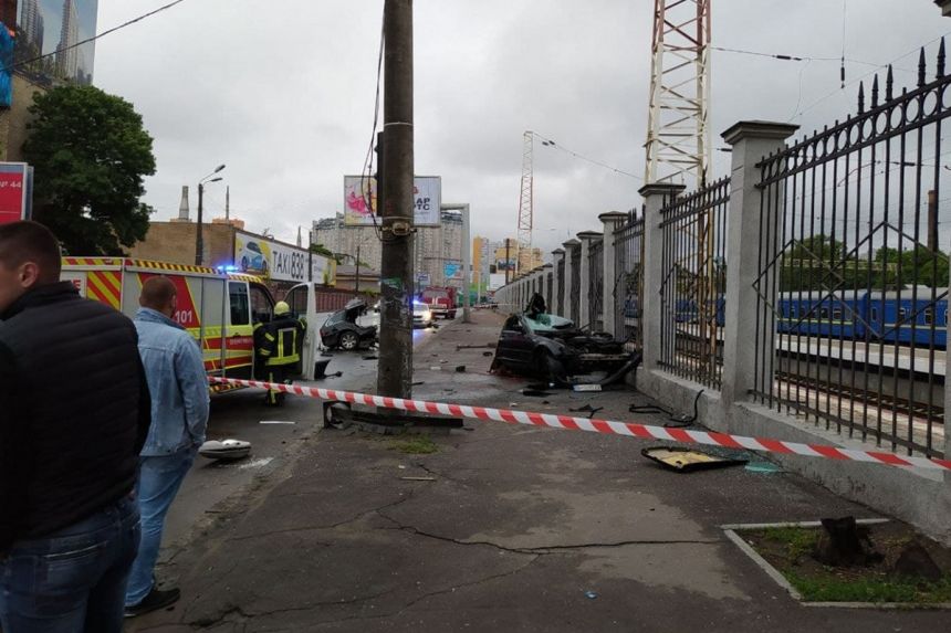 Un vitezoman cu BMW a accelerat puternic pe stradă și s-a ciocnit lateral cu un semafor, după care mașina s-a rupt în două, informează Știri.md