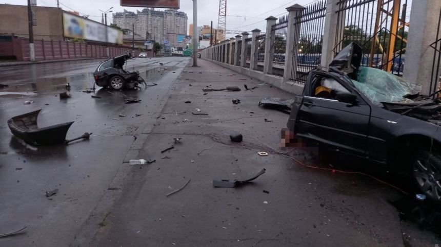 Un vitezoman cu BMW a accelerat puternic pe stradă și s-a ciocnit lateral cu un semafor, după care mașina s-a rupt în două, informează Știri.md