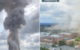 În imagini publicate pe rețelele de socializare se observă o coloană uriașă de fum și clădiri înalte cu ferestrele sparte.