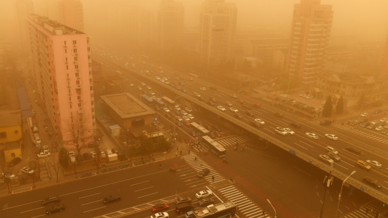 Un strat subţire de nisip a cuprins capitala Chinei, iar cerul s-a colorat în portocaliu. A fost cea mai mare furtună de nisip din ultimii zece ani, în condiţiile în care fenomenul este unul obişnuit în zonă, mai ales în lunile martie şi aprilie, scrie Mediafax.