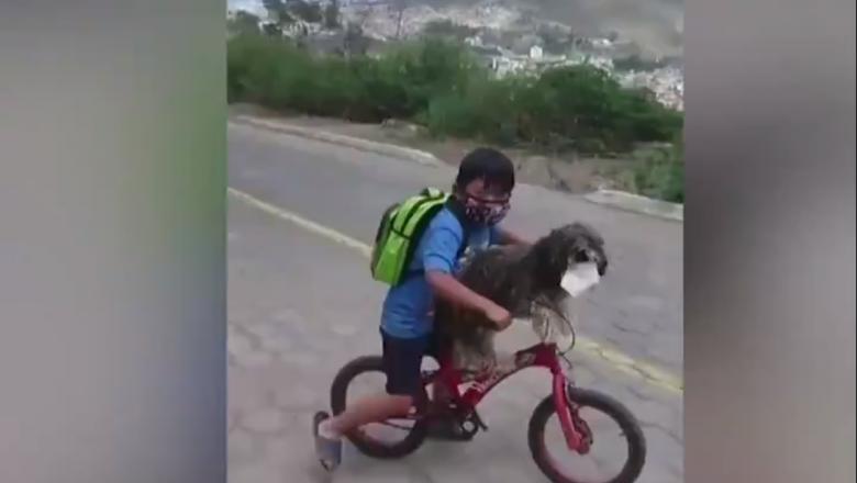 Un videoclip din Ecuador, țară puternic afectată de pandemia de coronavirus, a ajuns viral pe rețelele sociale. În imagini apare un copil care poartă mască de protecție și care își protejează și cățelul, în timp ce îl plimbă pe bicicletă, transmite Telegraph.md, cu referire la Digi24.ro